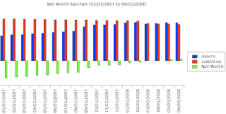 The image above represents our current net worth including the liabilities on our mortgages but not including the value of our homes. According to the graph above if we cashed in all of our investments today my husband and I would have just enough money to pay off our mortgages. I removed the actual dollar figures for reasons I have discussed at length in previous posts, but you can clearly see that the green net worth bar is now slowly moving up, while the red liabilities bar begins to inch down.