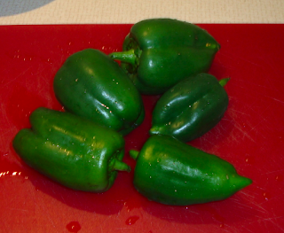 My box garden was a little less successful than I would’ve liked this year, but a few vegetables seemed pretty happy in my little square. Among the list of successes were garlic, chives and a variety of peppers. A few days ago I picked these five very perky green peppers from the garden.